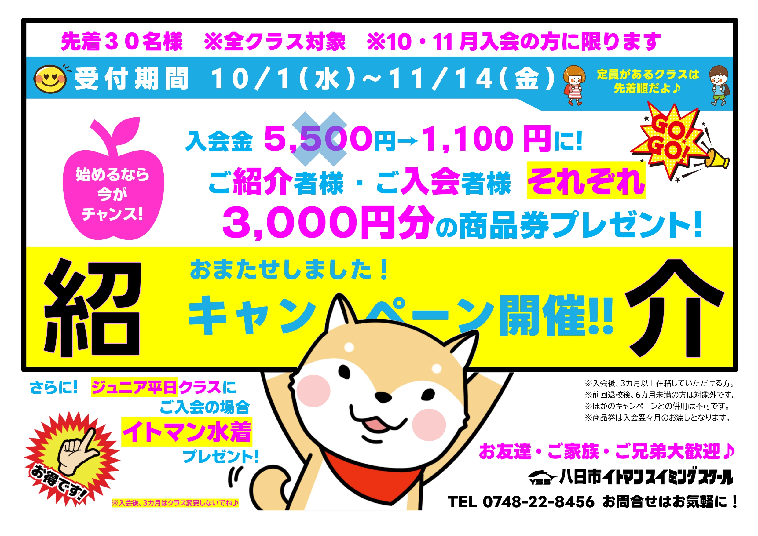 10月と、11月入会の方のみと少し期間が短いので、気を付けて下さいね。