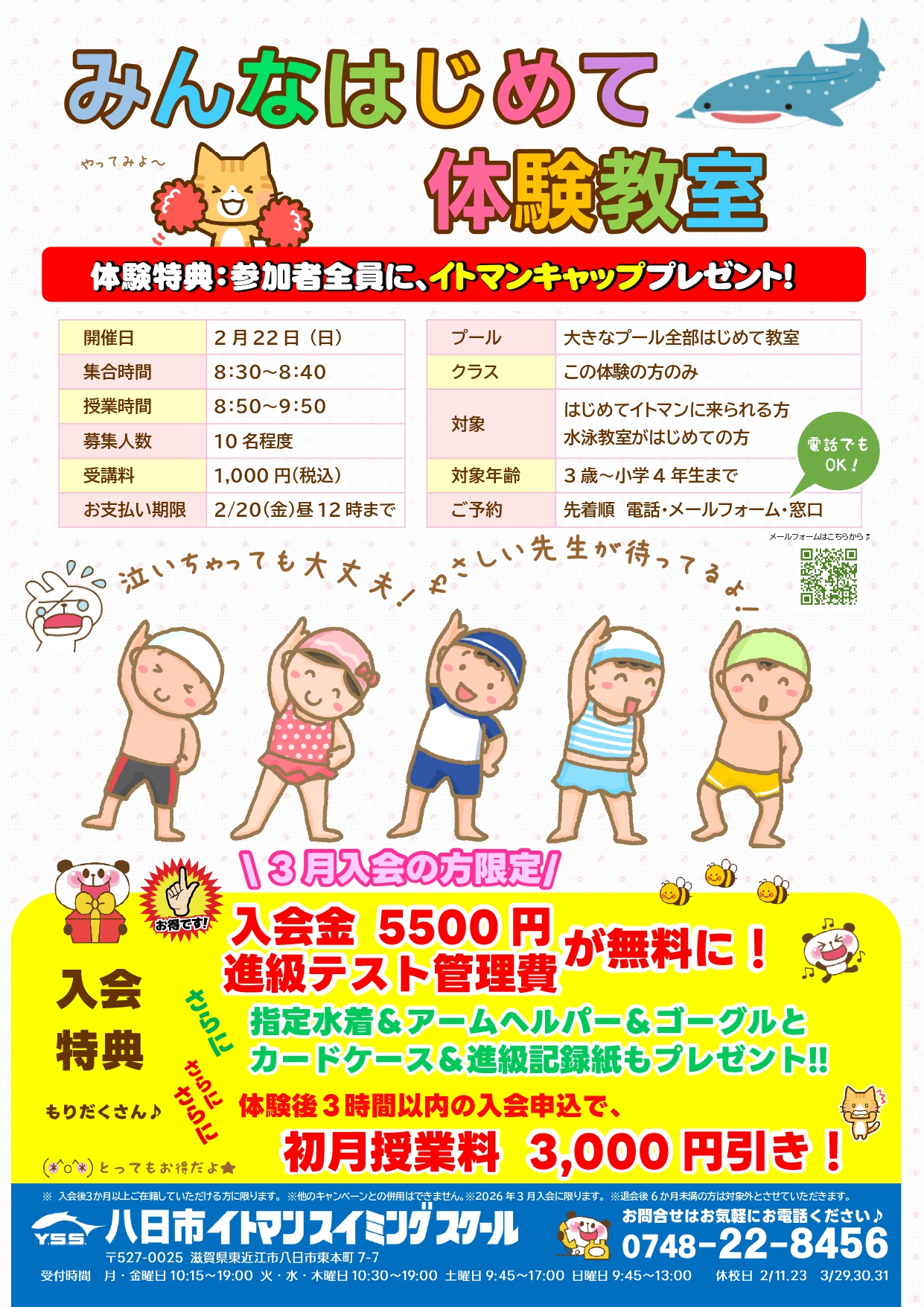 2/22(日)みんなはじめて体験教室大募集!【一般・ジュニア】