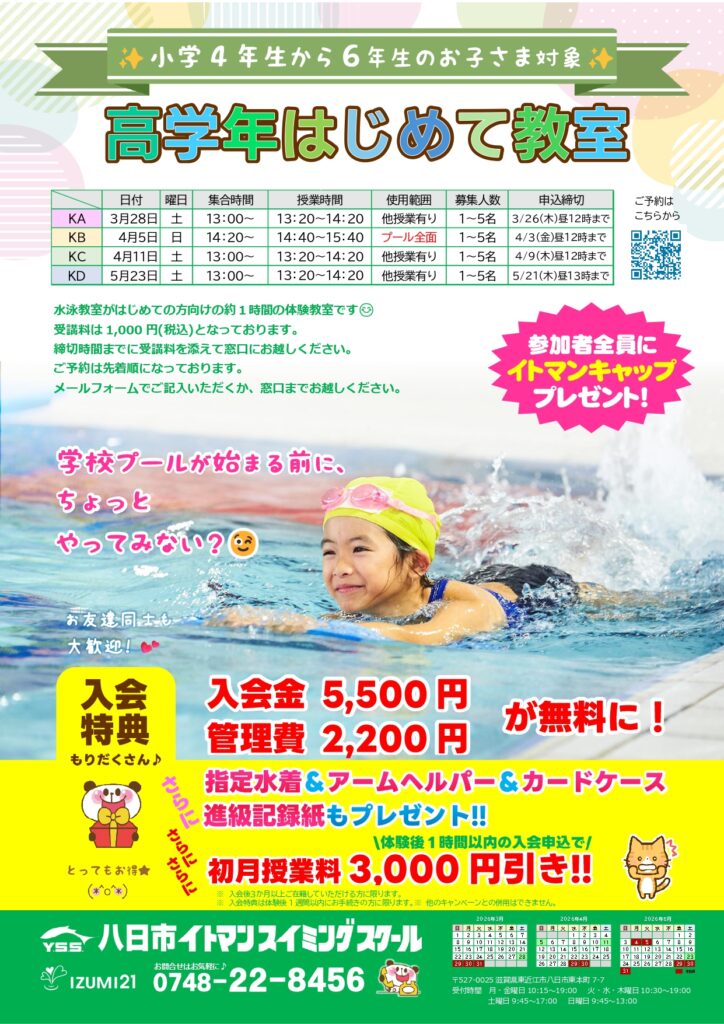 🏊♀️高学年はじめて教室開催します!