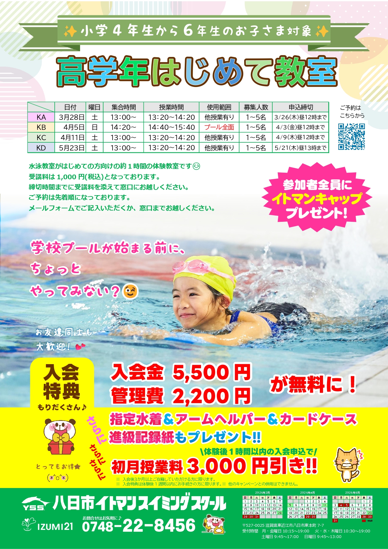 さらに、体験当日にご入会手続きをしてくださると、